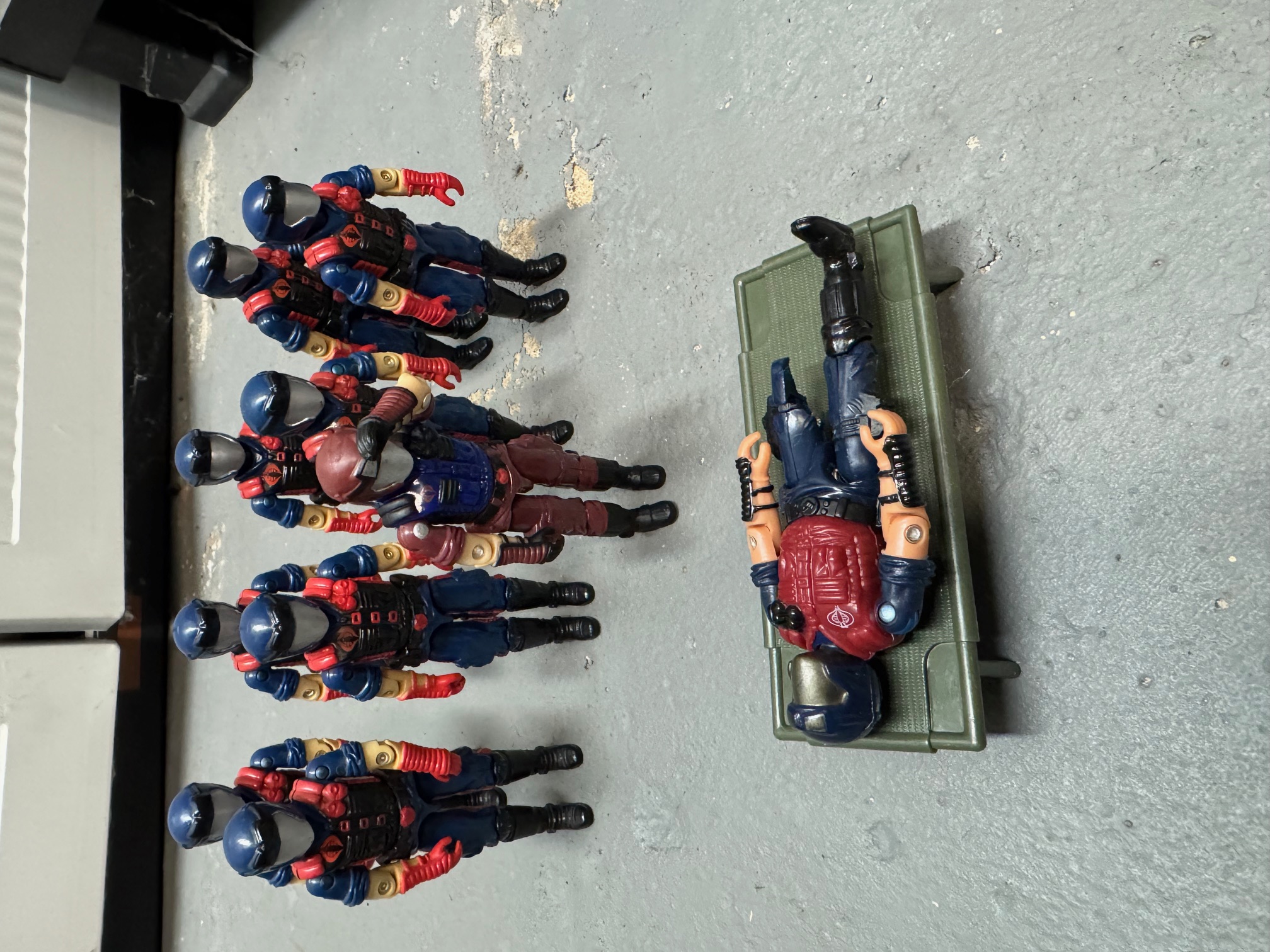 I am currently snowed in and injured my back over the weekend. Ah the joys of getting old. So I figured I would take a look at the 2010 Hiss Tank. As you can see my first actual post has nothing to do with ARAH, although one o-ring figure was damaged during the making of this post. Sadly, a 2003 Spy Troops Viper's leg snapped as I was trying to pose him for this. Obviously, the photo above has an AI generated background. I am light on real background effects and am at the mercy of my basement for photos at the moment.